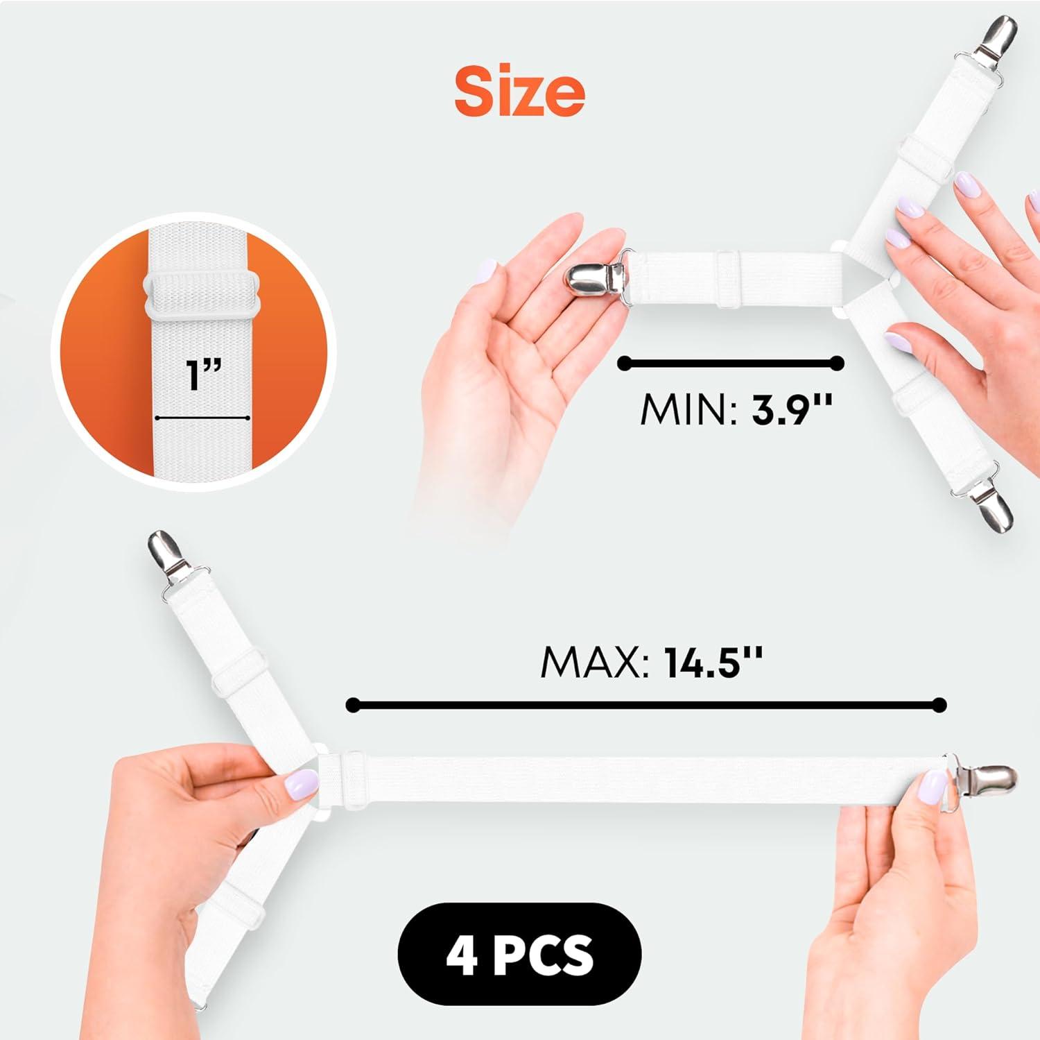 image5 STARS UNITED Bed Sheet Straps Set  Easy to Use Adjustable Elastic Fasteners with Metal Clips  Sheet Holders for Corners  Fitted Sheet Clips to Hold Sheets in Place  8 Pcs WhiteGrey