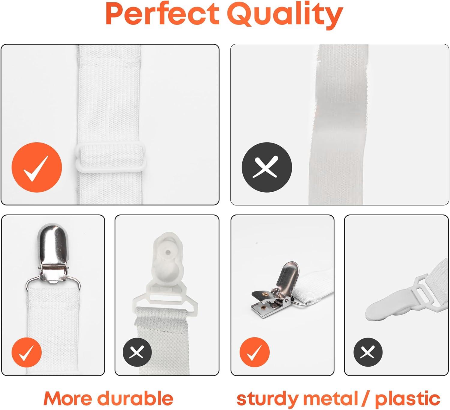 image5 STARS UNITED Bed Sheet Straps Set  Easy to Use Adjustable Elastic Fasteners with Metal Clips  Sheet Holders for Corners  Fitted Sheet Clips to Hold Sheets in Place  8 Pcs WhiteWhite