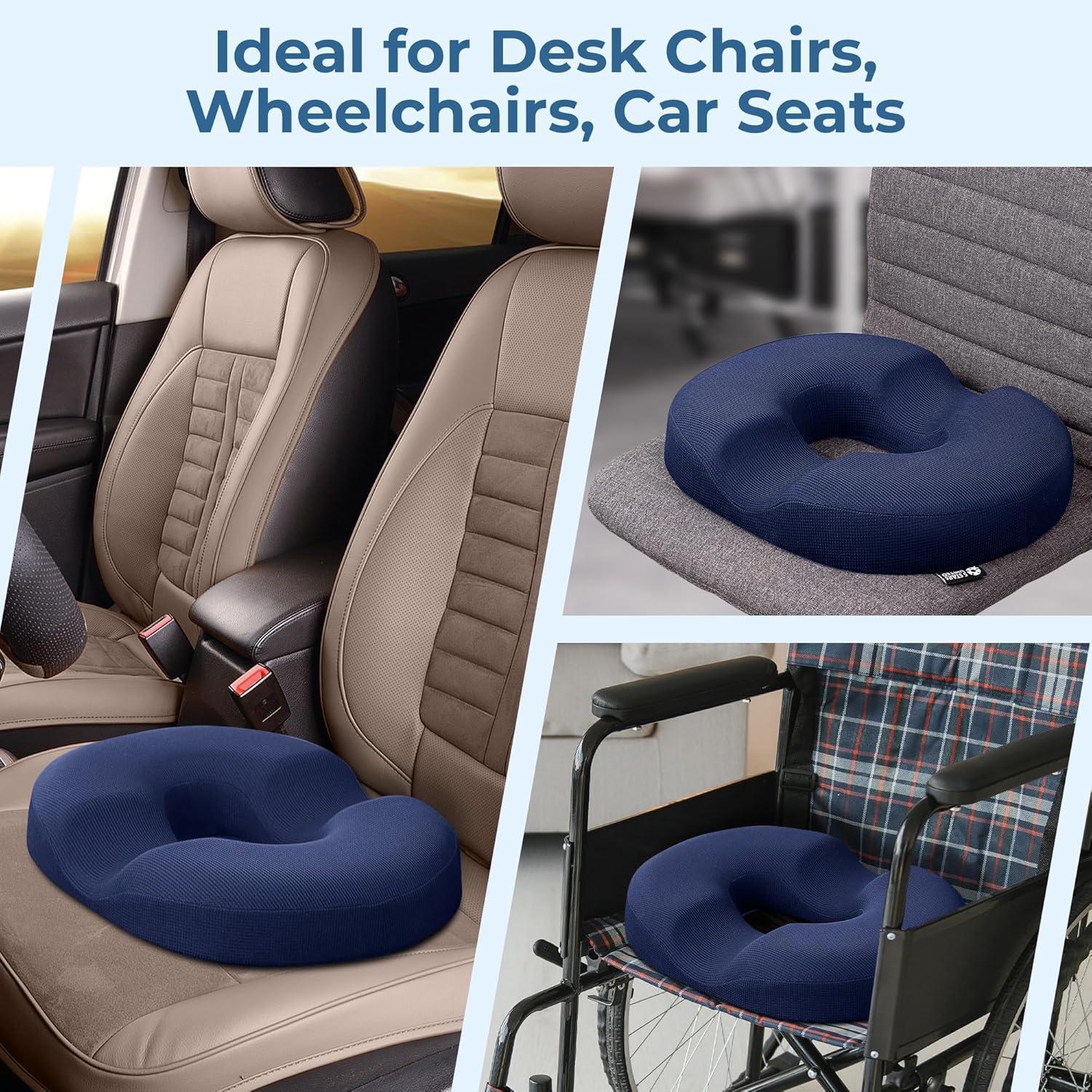 5 STARS UNITED Donut Pillow Hemorrhoid Tailbone Cushion – Large Cushion for Pain Relief – Coccyx, Prostate, Sciatica, Pelvic Floor, Pressure Sores, Pregnancy, Postpartum Recovery, Black(Blue)
