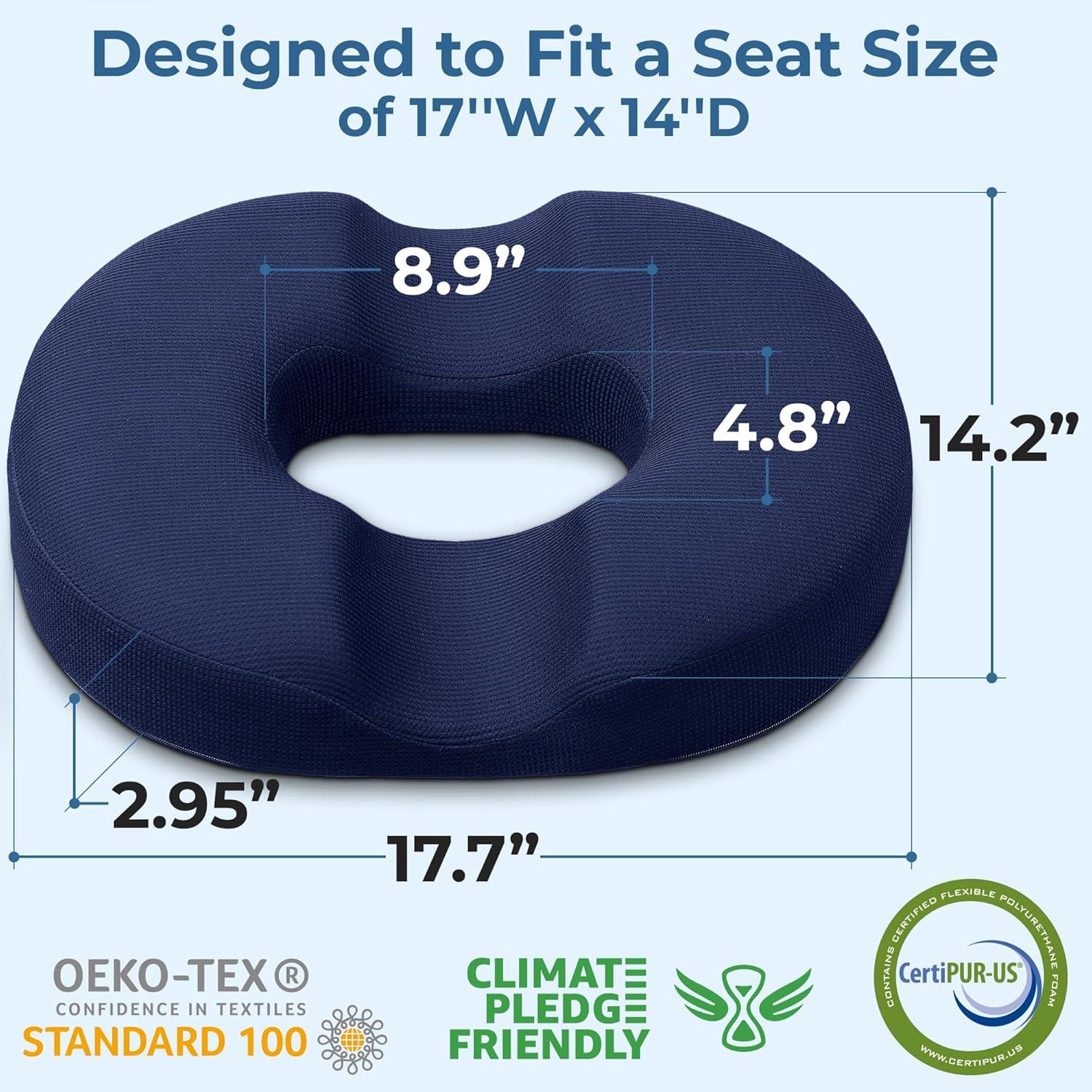 𝗞𝗲𝘆 𝗙𝗲𝗮𝘁𝘂𝗿𝗲𝘀: Tailbone pain relief cushion is large enough for all at 17.7″ x 14.2″ x 2.95”. It's a wonderful fit for an adult with body weight up to 240 lb. The sciatica pain relief pillow has a non-skid backing that prevents slippage. Our coccyx cushion has a breathable jersey knit cover that doesn't trap heat, so you sit comfortable and cool. The donut seat cover is removable and machine washable