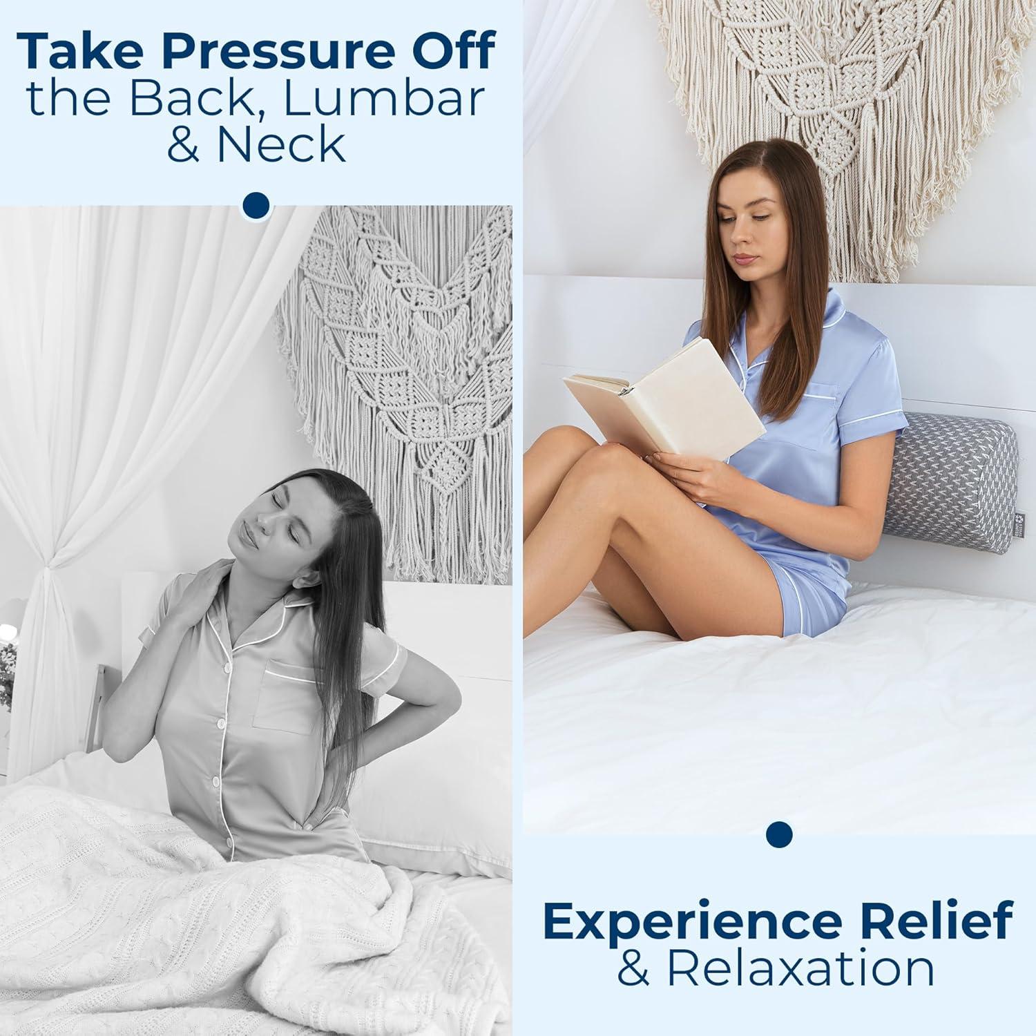 image5 STARS UNITED Knee Pillow for Back Sleeping  Memory Foam Cushion for Sciatica Pain Relief  Under Leg Support for Sleeping on Back  Half Moon Bolster for Bed WhiteGrey