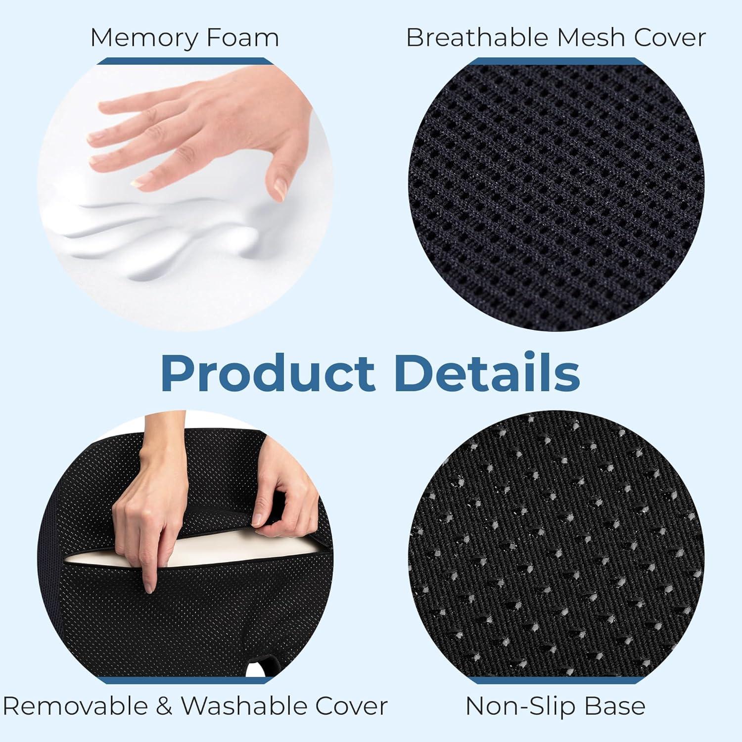๐—ž๐—ฒ๐˜† ๐—™๐—ฒ๐—ฎ๐˜๐˜‚๐—ฟ๐—ฒ๐˜€: Premium memory foam supports up to 300 lb. Contoured design for tailbone, buttocks, hips, and thigh comfort. Soft and machine-washable mesh cover. Non-slip base for stability
