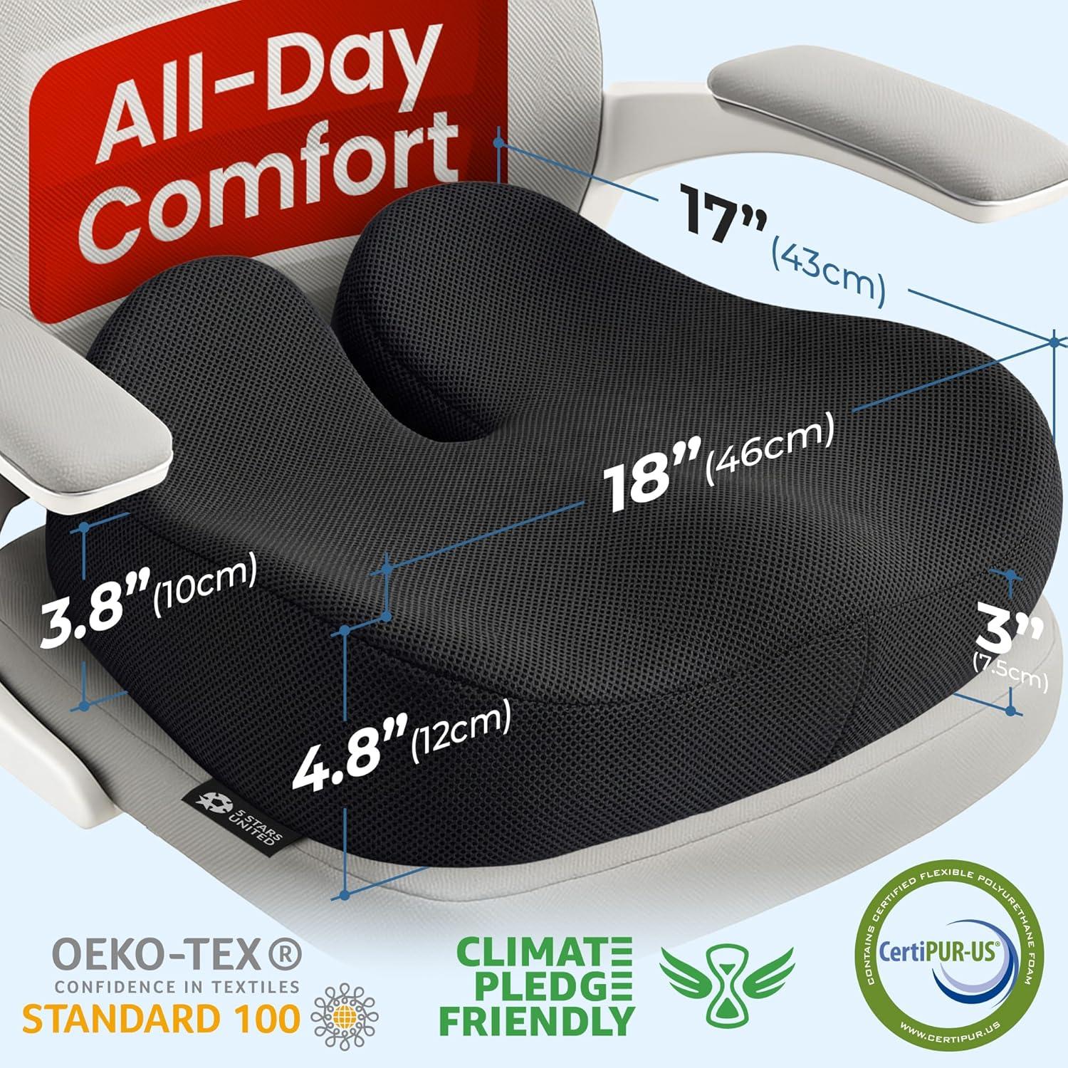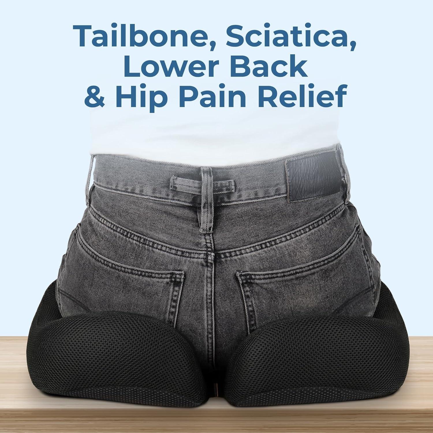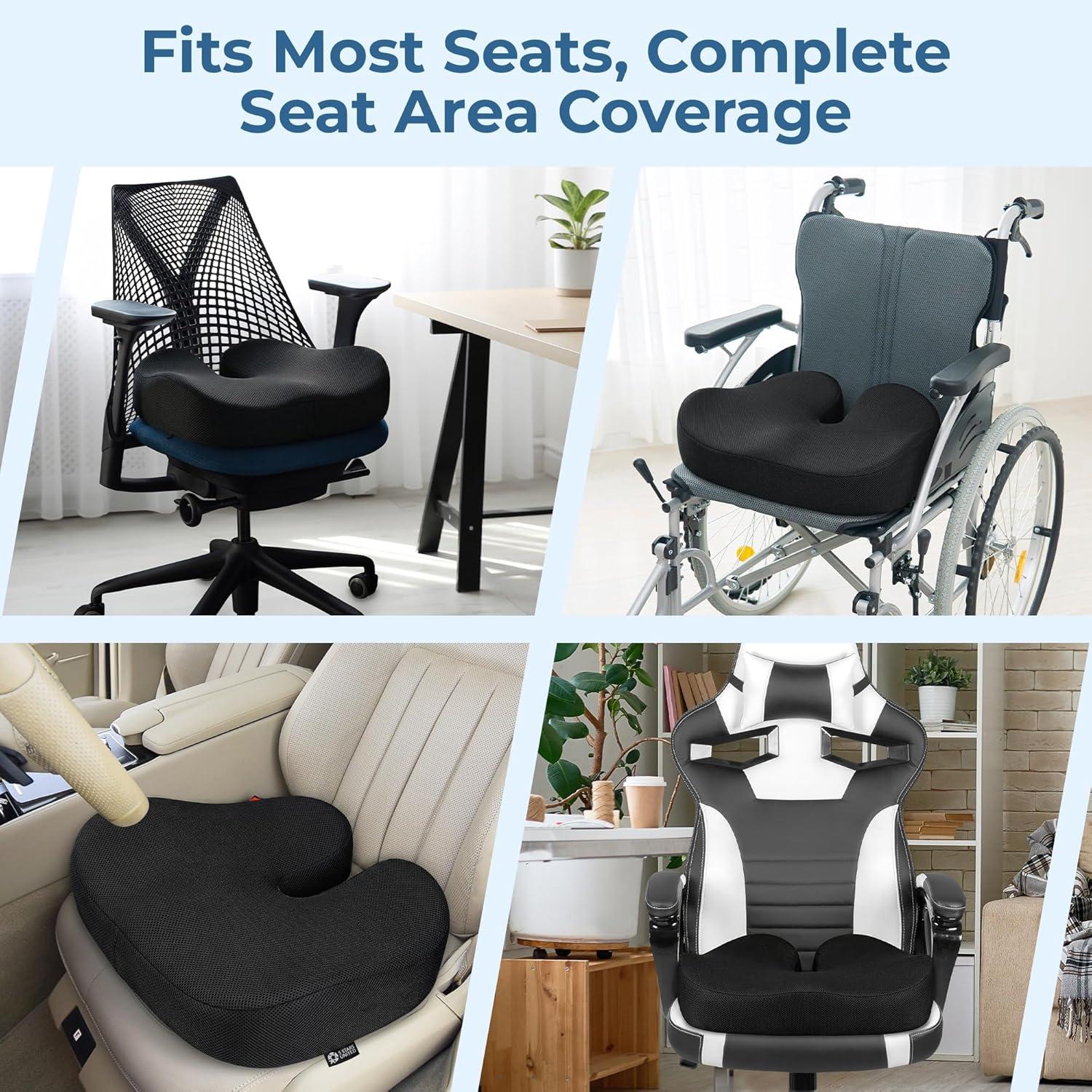 5 STARS UNITED Seat Cushion for Tailbone Pain Relief โ€“ Memory Foam Cushion for Coccyx, Hip, Sciatica & Post-Surgery Recovery โ€“ Wheelchair, Car, Desk, Gaming & Office Chairs, Black, XX-Large