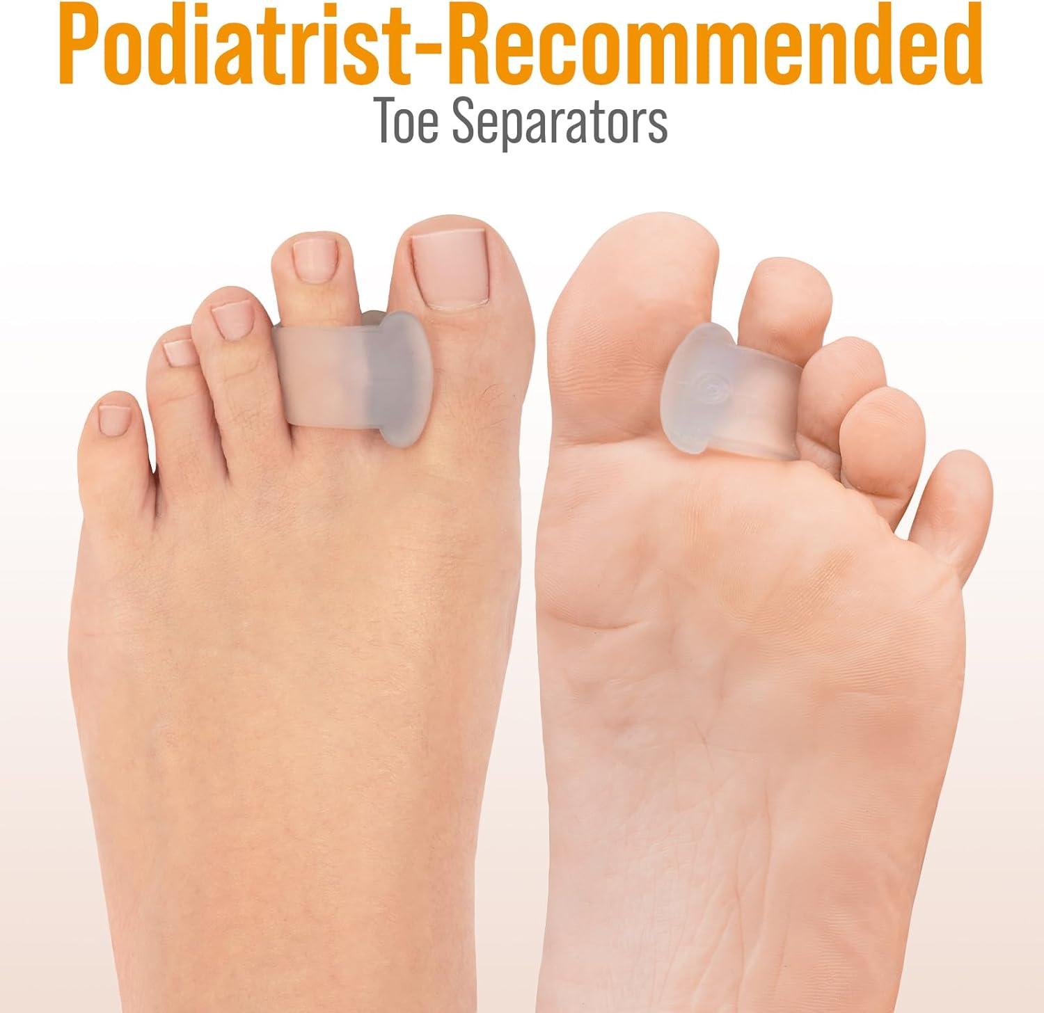 5 STARS UNITED Toe Spacers for Men & Women – 4 Big and 2 Pinky Gel Separators for Overlapping & Curled Toes, Bunions, Alignment – Diabetic Foot Care, Silicone Spreader, Corrector & Straightener, Clear(Small 4 Pack)